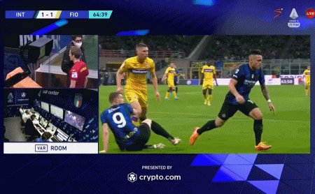 64'劳塔罗·马丁内斯禁区内被放倒,但裁判观看VAR后取消判罚点球